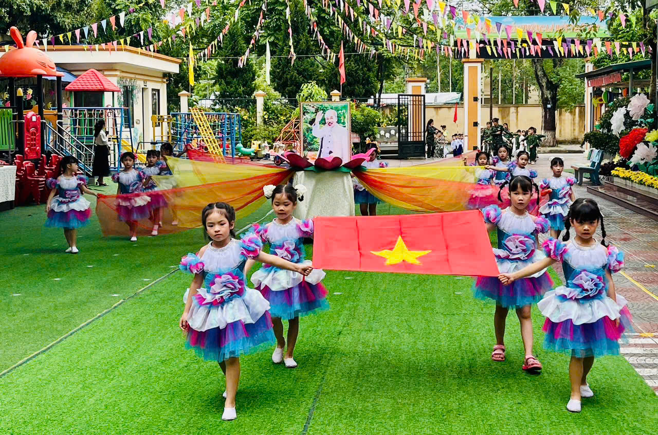 Trẻ biểu diễn các tiết mục văn nghệ chào mừng