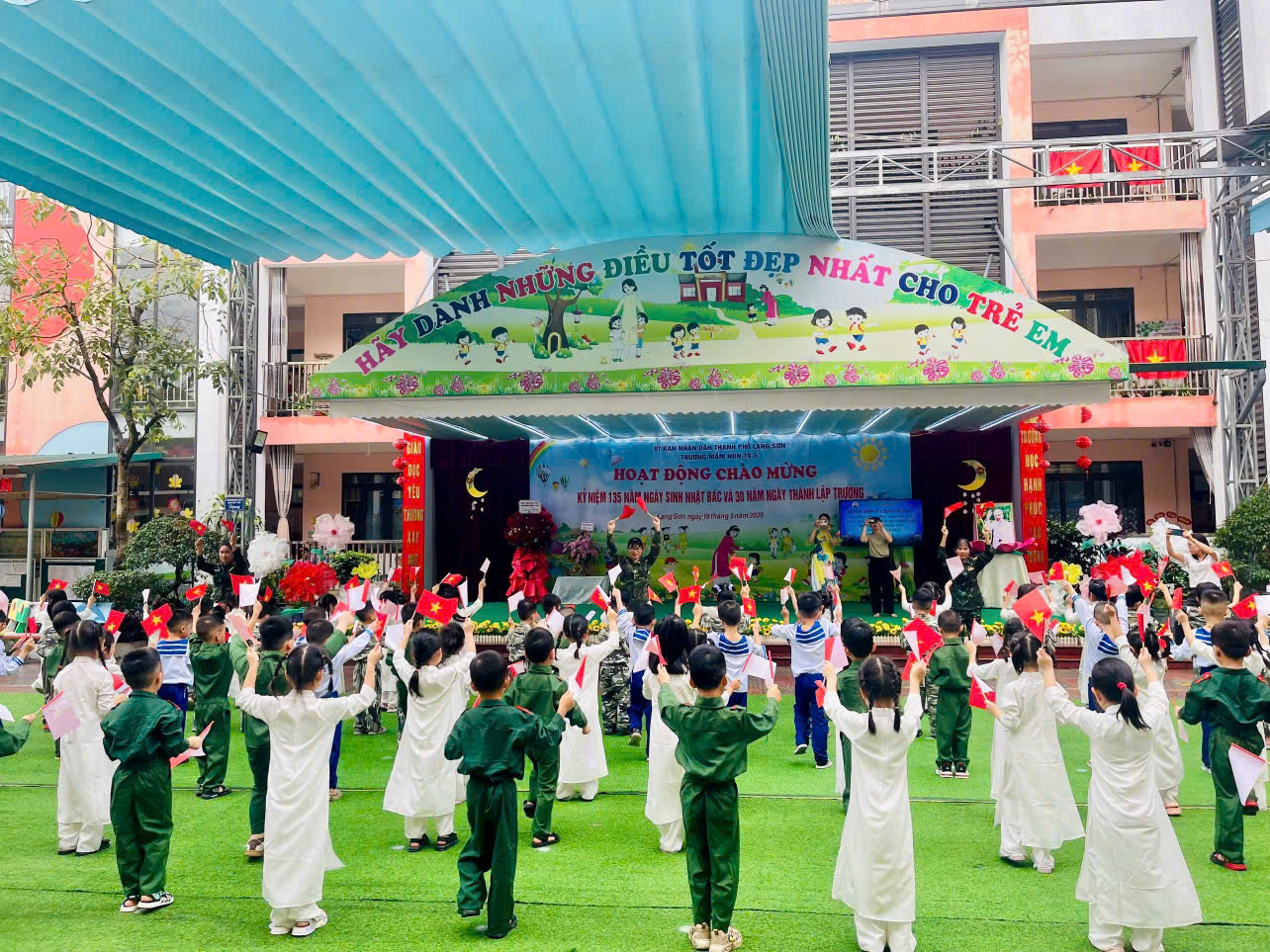 Sáng nay, ngày 19/5/2025 trường mầm non 19-5 tưng bừng tổ chức các hoạt động chào mừng ngày sinh Chủ tịch Hồ Chí Minh vĩ đại và kỉ niệm 30 năm ngày thành lập trường. Lễ kỷ niệm diễn ra trong không khí vui tươi với nhiều hoạt động hết sức ý nghĩa: Trẻ diễu hành, tập đồng diễn, hát quốc ca, xem video “30 năm xây dựng và trưởng thành của Trường Mầm Non 19-5”, tham gia các trò chơi vận động với chủ đề: “Vui khỏe theo gương Bác Hồ”…Hoạt động này giúp trẻ biết về việc rèn luyện sức khỏe và tập luyện thể thao khi Bác Hồ còn sống, góp phần giáo dục trẻ kính yêu Bác Hồ, phấn đấu chăm ngoan để trở thành cháu ngoan Bác Hồ và lòng tự hào khi được học dưới mái trường mang tên ngày sinh nhật Bác 19-5.